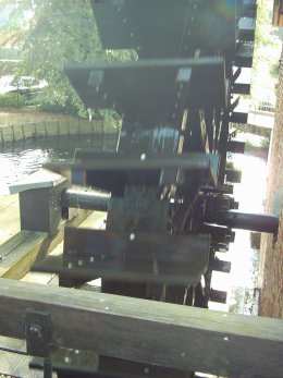 - Dwars op de waterloop, houten beschot boven het waterrrad