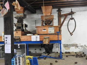 Enkel het gietijzeren kransstuk (type Claeys-Zedelgem) en de vier metalen trekschoren werden geplaatst; de karn- en maalinrichting bleven achterwege.