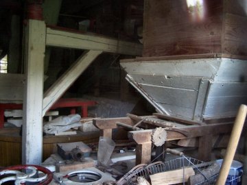On aperçoit à l'arriére un énorme canal qui entre dans la maison pour alimenter la roue.