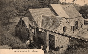 De Moulin de Falogne, gelegen aan de gelijknamige straat en de gelijknamige waterloop, is een watermolen die voorzien was van een overdekt, hoog bovenslagrad, Een lange, hoge watergoot leidde het water boven het rad.