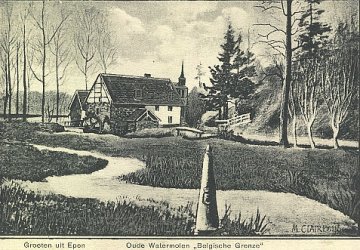 Van deze molen tekende M. Clairbout een mooie prent, opgenomen als prentkaart in de Atlas Van Stolk, uitgegeven tussen 1925-1930. Ondanks het opschrift "Groeten uit Epen - Oude Watemolen "Belgische Grenzemolen", staat de watermolen toch op het Belgisch grondgebied. Aan de watergevel zien we vakwerk (zoals die thans nog aanwezig is), met een thans verdwenen houten ondeslagrad. De waterloop is omgelegd.