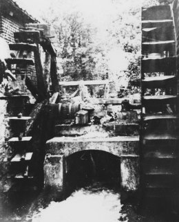 Het was een zgn. dubbelmolen, met een molengebouw (en waterrad) op elke oever. Terwijl het ene onderslagrad steeds van hout bleef, was het andere van metaal.