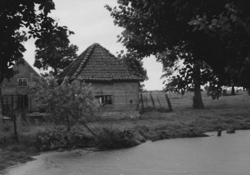 - het gehele gebouw: bakstenen veldmuren waarop een vierkante houten constructie (buitenwerks 4,60 x 4,60 m) met wanden van stijlwerk, beslagen met planken van 22 à 27 cm breedte