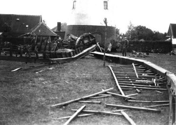 Het moet een treurig schouwspel geweest zijn: de pas herstelde molen fris gekalkt en geteerd, de wieken geschilderd in de nationale kleuren, alles flink opgepoetst en dan.. op enkele seconden alles reddeloos verloren.