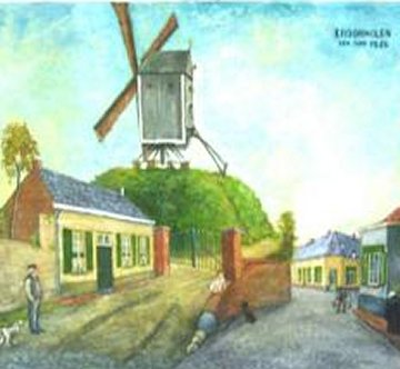 Hij werd voor 1615 opgericht. Na vernieling in 1690 gebeurde nog hezelfde jaar de heropbouw. We zien hem aangeduid op de Ferrariskaart van ca. 1775 met het bruin symbool van een staakmolen.