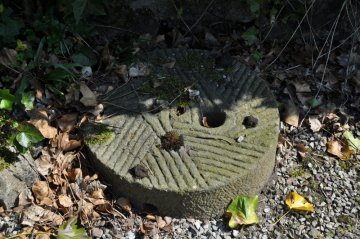 Par contre, cinq belles pierres de meules de différents diamètres ornent le jardin.