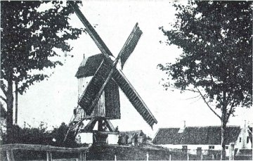De staakmolen werd in 1918 gesloopt. Nu is daar enkel nog een recentere bakstenen dwarsschuur bewaard.