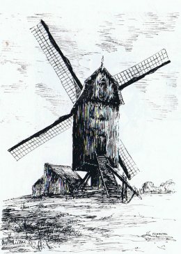 En 1927 et 1931, le moulin à vent en bois était encore en bon état ét exploité par sa propriétaire, la veuve de Pierre Schotte, et son fils Albert Schotte.