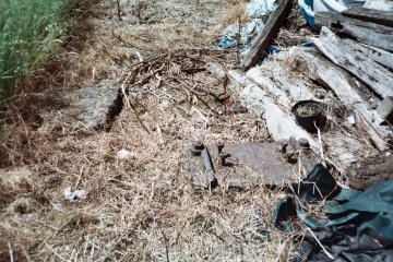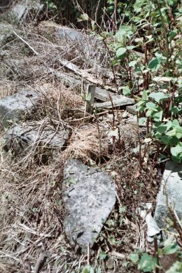 De fundamenten (blauwsteen, ijzeren onderstukken) waren in 2013 nog zichtbaar.
