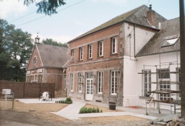A gauche et à droite de ce volume central apparaissent des ailes de même allure. L'une et l'autre sont plus basses que le volume principal. Leur hauteur se limite à un niveau (côté moulin) et à trois courtes travées. Vers l'ouest, un dernier volume présente des caractères du même type et vient s'acoller perpendiculairement à l'aile. Il prend toutefois davantage d'extension et de hauteur.