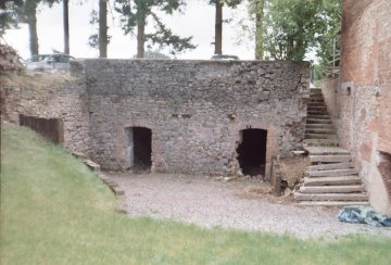 La bâtisse la plus importante se trouve au centre. Il s'agit d'un volume de deux niveaux (rez-de-chaussée et étage) de cinq travées. Vers l'aval, un niveau de cave est entièrement apparent.