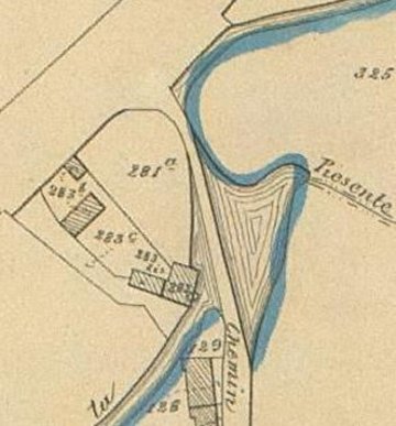 Op de Kadastrale Atlas van P.-C. Popp (ca. 1860) vinden we de "Moulin à eau à farine" op Sect. A282 in het bezit van Bruyère, Pierre-Emile et Léopold-Louis, cult(ivateur), Irchonwelz.