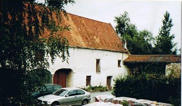 Une toiture couvrait probablement ce logement: un haut mur parallèle au mur gouttereau du moulin le jouxte en effet du côté de la vallée. Côté roue, ce mur est posé sur une socle fait d'assises régulières de blocs de petit granit équarris et ciselés. Il en va de même pour la base du mur gouttereau du moulin. Le deuxième accès est un portique en pierre bleue composé de deux vannes.
