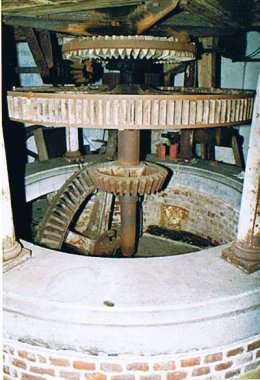 Het houten bovenslagrad is sterk verweerd, maar het mechanisme met zijn gietijzeren overbrenging en drie steenkoppels verkeert nog in vrij goede staat. De huidige eigenaars ijveren om een nieuw bovenslagrad aan te brengen en beogen de opwekking van elektriciteit.