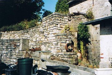C'est ainsi que l'eau atteignait le moulin pour actionner la machinerie hydraulique avant d'être rejetée vers le cours principal de la rivière. Le passif de maçonnerie qui termine le bief et permettait de finaliser l'acheminement de l'eau vers les roues est d'aillerus tourjours visible sur le côté gauche de la façade arrière.