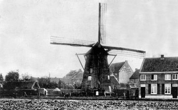 De stenen bergmolen (op lage wal) werd in 1908 gesloopt: hij ondervond steeds meer hinder van de huizenrij (met verdieping) aan de straat.