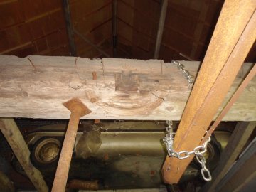 De onderste meelzolder van deze molen bevatte vroeger de koning en het spoorwiel. Tegen de zoldering is nog het lantaarnwiel op de spil aanwezig, ter aandrijving van het steenkoppel.
