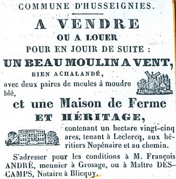 Le Moulin à vent vers Tiripré était un moulin à vent à farine en bois au nord du village. à la Ruelle du Moulin à vent,